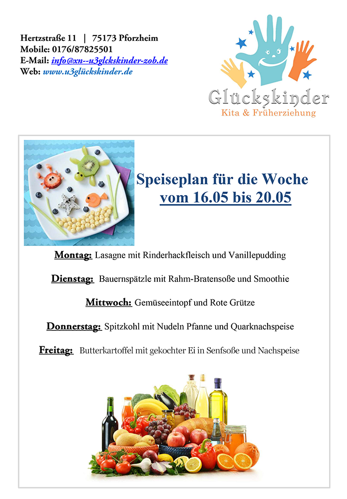Auf diese Weise wird die natürliche Neugier Ihres Kindes geweckt und es entwickelt Spaß am Essen. Wenn Ihr Kind aus gesundheitlichen Gründen eine besondere Ernährung braucht oder Sie Wünsche bezüglich der Ernährung haben, werde ich Ihre Ansprüche selbstverständlich beachten und umsetzen.
