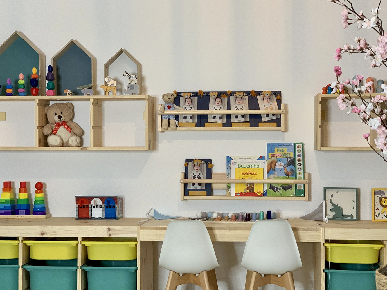 Die Kindertagespflege befindet sich in einer angemieteten Dreizimmerwohnung von etwa 82 qm im zweiten Geschoss. Es gibt ein großes Spielraum von ca. 30 qm mit Mal- und Bastelbereich und wo sich jeder einen Platz zum Schlafen findet. Zudem befindet sich in diesem großen Raum eine Kuschelecke unter dem Baldachin für die Kinder zum Zurückziehen, um sich ein Buch anzuschauen oder einfach mal auszuruhen, ausgestattet. Durch die große Fensterfront, habe ich in diesem Raum sehr viel Tageslicht.
