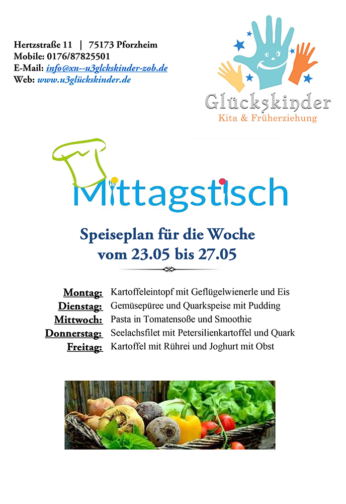 Auf diese Weise wird die natürliche Neugier Ihres Kindes geweckt und es entwickelt Spaß am Essen. Wenn Ihr Kind aus gesundheitlichen Gründen eine besondere Ernährung braucht oder Sie Wünsche bezüglich der Ernährung haben, werde ich Ihre Ansprüche selbstverständlich beachten und umsetzen.